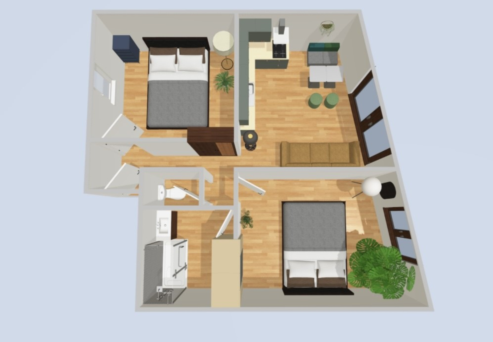 Avec une possibilité d'aménagement en 3 pièces ( voir plan, non contractuel).